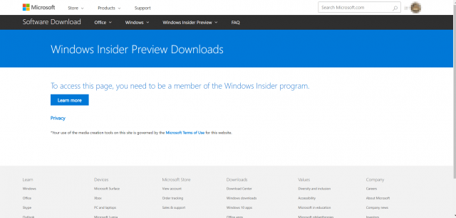 Si vous n’êtes pas inscrit au programme Windows Insider, vous aurez le message d’erreur « To access this page, you need to be a member of the Windows Insider program. ». Vous pouvez vous inscrire gratuitement sur la page suivante : https://insider.windows.com/.